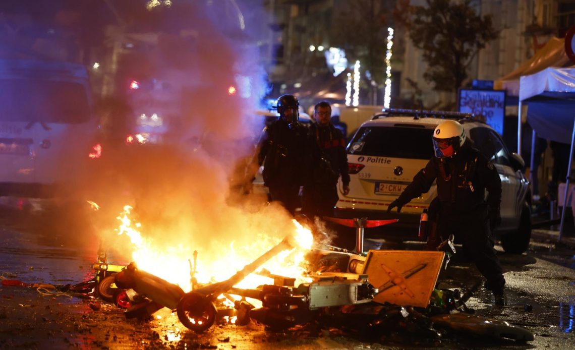 Los incidentes comenzaron a mitad del segundo tiempo, cuando unos 150 jóvenes reunidos en el centro de la capital belga prendieron fuego a un contenedor y lanzaron petardos y fuegos artificiales, tras lo cual la emprendieron a golpes con los vehículos estacionados en la zona, según informa la televisión pública belga RTBF.