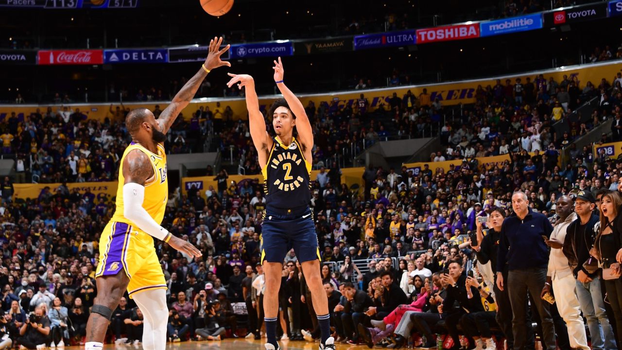 Pacers 116, Lakers 115; por Indiana T. Haliburton un doble-doble de 24 puntos y 14 asistencias con siete rebotes.