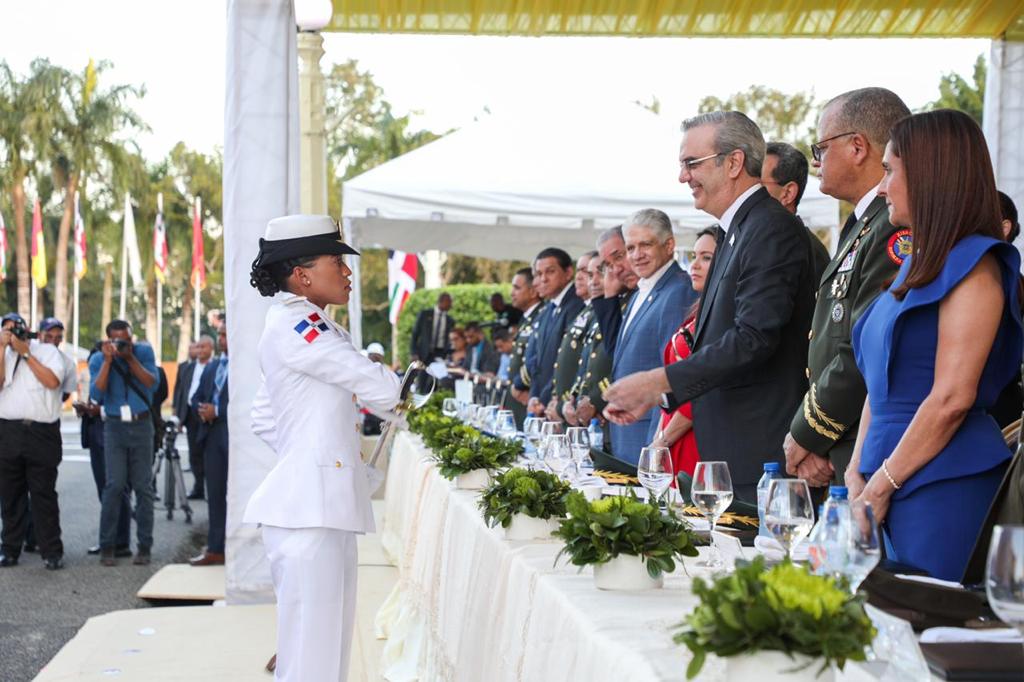 San Isidro.- Tras recibir los honores de estilo de 21 salvas y la entonación del Himno Nacional, el presidente Luis Abinader, como Autoridad Suprema de las Fuerzas Armadas y la Policía Nacional, encabezó la graduación de la sexagésima promoción de cadetes de la Academia Militar Batalla de Las Carreras del Ejército de República Dominicana.
