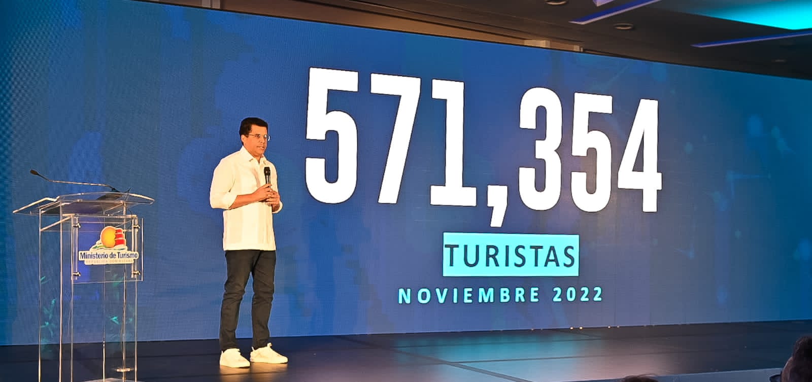 En su ya tradicional conferencia de prensa mensual para dar los resultados del comportamiento del sector, el funcionario informó que en el mes pasado fue el mejor mes de noviembre de la historia ya que el país recibió 571,354 turistas por la vía aérea, 109,489 turistas más que los que llegaron el mismo mes de noviembre del año 2019, lo que representa un aumento de un 24 por ciento.