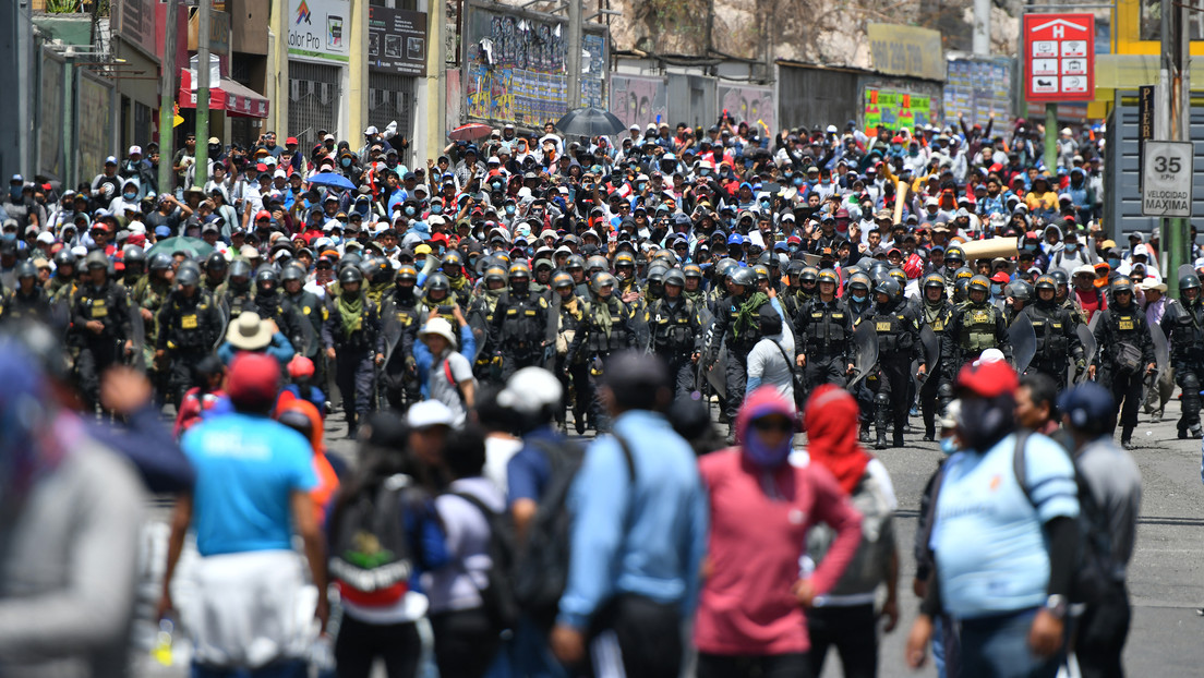 “Hay una persona que ha resultado muerta, pero no es por acción de la Policía, ni por arma de fuego, ya se ha internado en la morgue, se ha hecho la necropsia de ley, la muerte habría sido por golpe con objeto contundente, le ha caído una piedra”, dijeron las autoridades policiales, citadas por La República.