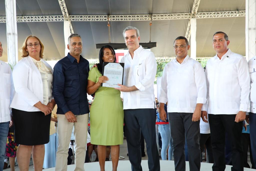 San Cristóbal, Haina. -El presidente Luis Abinader junto a la Unidad Técnica Ejecutora de Titulación de Terrenos del Estado (UTECT) y el Instituto Agrario Dominicano (IAD) entregó este viernes en el municipio de Haina de esta provincia, un total de 1,300 títulos de propiedad de un total de 2,817.