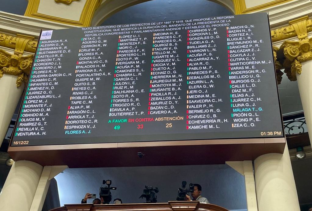 PERÚ.-El Congreso de Perú rechazó este viernes el proyecto de reforma constitucional para el adelanto de elecciones para diciembre de 2023.