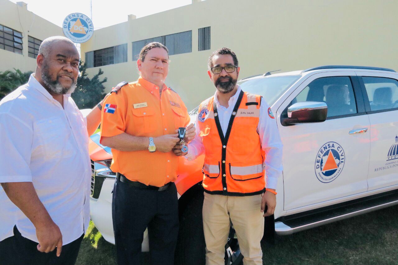 Santo Domingo.- El director ejecutivo de la Defensa Civil, Juan Salas, entregó una camioneta marca Mazda, modelo BT-50 2022, cero kilómetros, a la oficina provincial de la institución en la provincia Sánchez Ramírez. La entidad también adquirió un bote Mercury nuevo con su motor, para reforzar su Unidad de Salvamento Acuático.