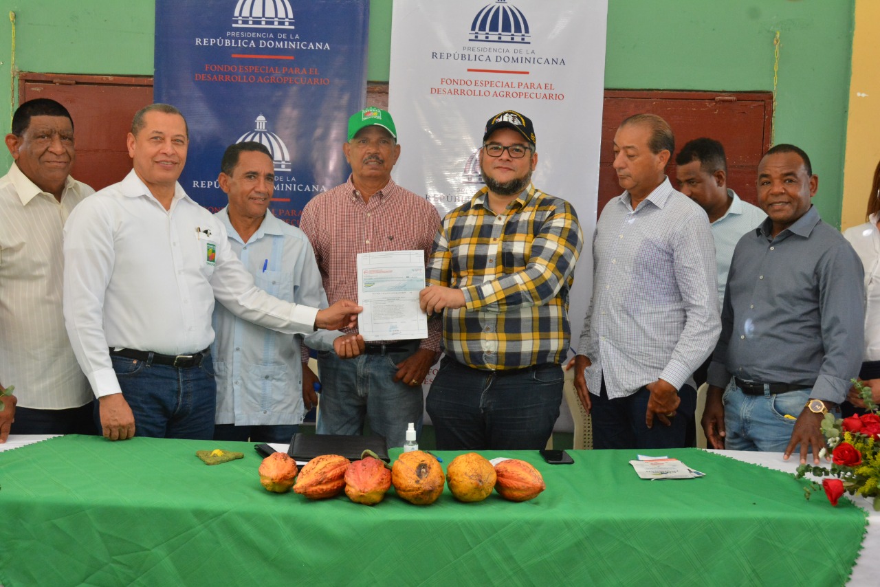 En el encuentro con productores de Yamasá Galván entregó. ‘’Agregó que  a partir de la rehabilitación de las plantaciones de cacao y el aumento de la productividad se generará mayor bienestar social y económico a todas esas comunidades’’.