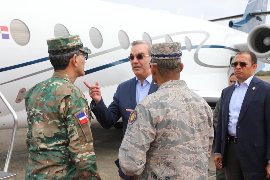 El presidente Abinader fue despedido por el ministro de Defensa, teniente general Carlos Luciano Díaz Morfa; el comandante general de la Fuerza Aérea de República Dominicana, mayor general técnico de Aviación Carlos Febrillet Rodríguez y el comandante de la Guardia Presidencial, general de brigada Guillermo Caro Cruz.
