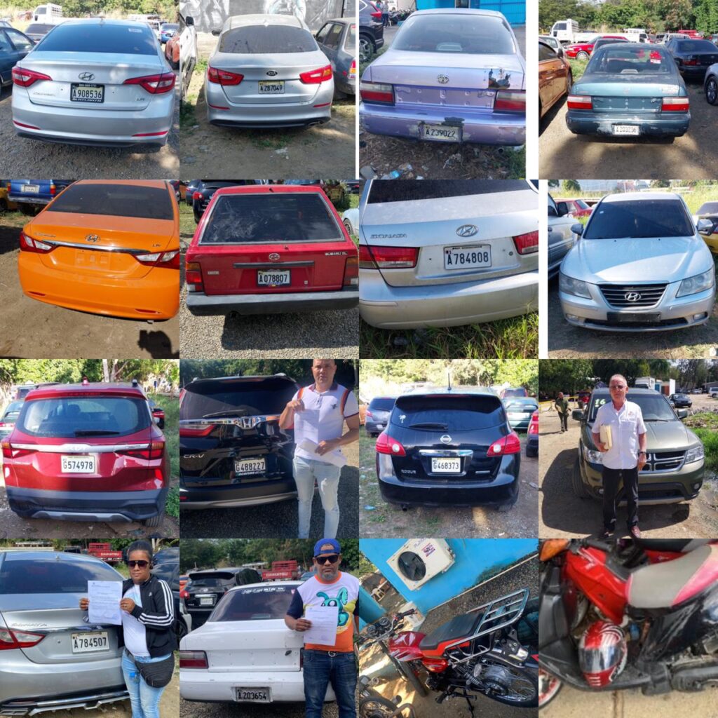 Los vehículos recuperados suman a 36, entre los cuales figuran, carros, jeepetas, camionetas y motocicletas de diversas marcas, como son Hyundai, Kia, Subaru, Mitsubishi, Sonata, Nissan, Toyota, Honda y Cadillac.