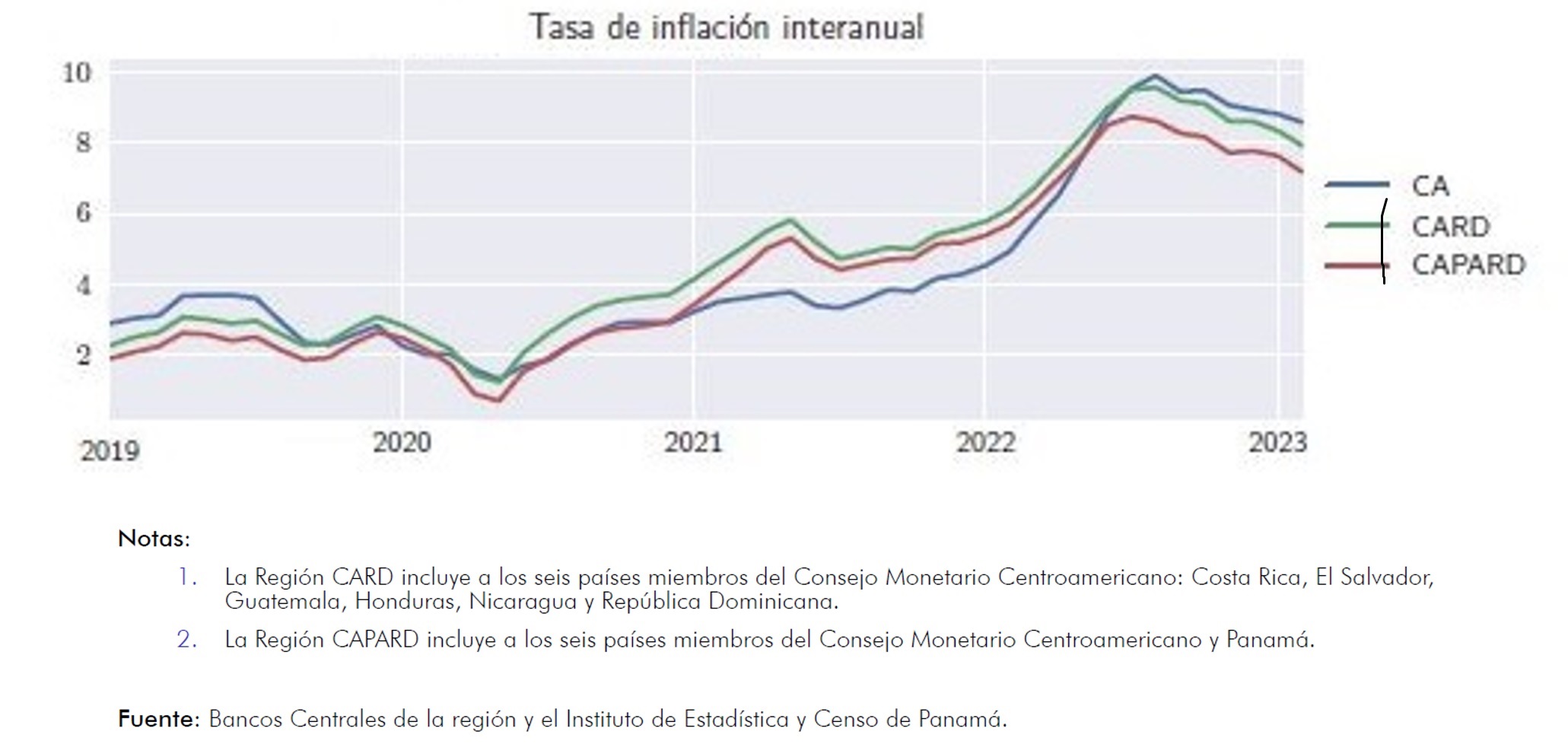 También se realiza un cálculo de inflación para la región CARD (Centroamérica y República Dominicana) y para la región CAPARD (región CARD más Panamá), como un promedio ponderado de las inflaciones por país.