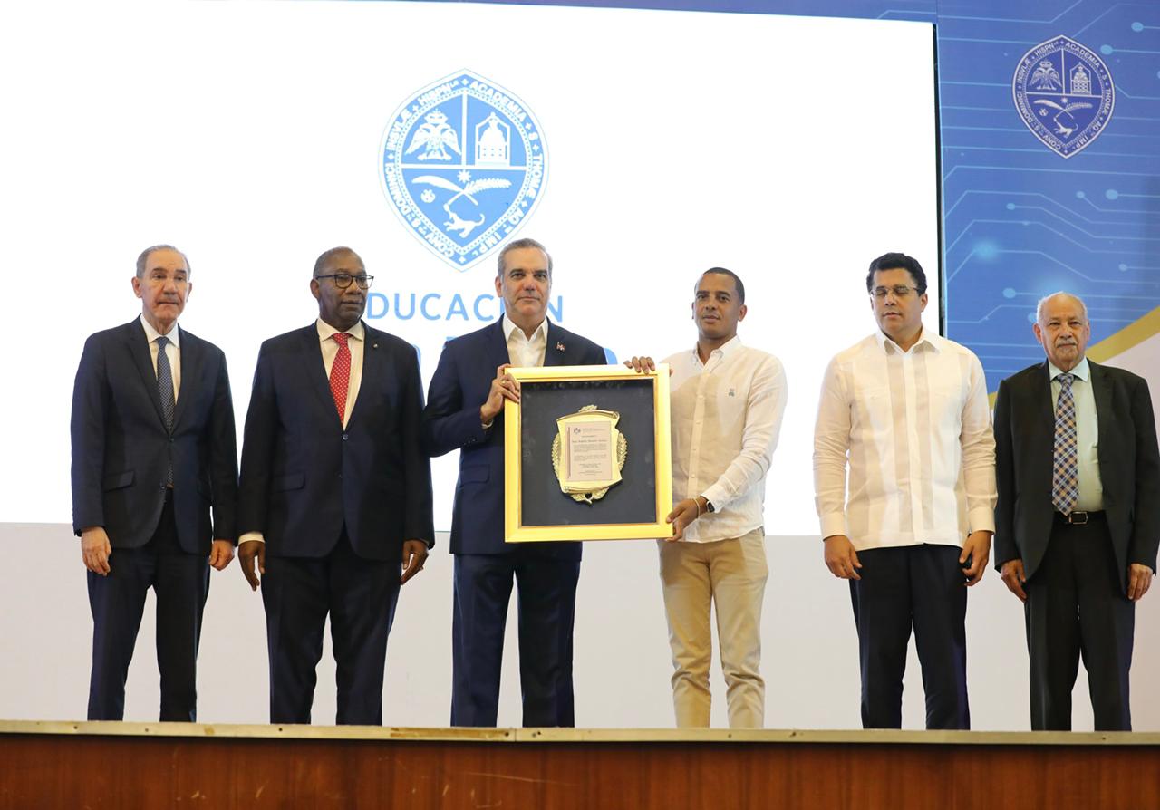 Durante el acto, que se llevó a cabo en el Aula Magna de la casa de altos estudios, el presidente Abinader fue reconocido por su incansable labor y compromiso en el ámbito de la educación superior, especialmente en apoyo a la Universidad Autónoma de Santo Domingo (UASD).