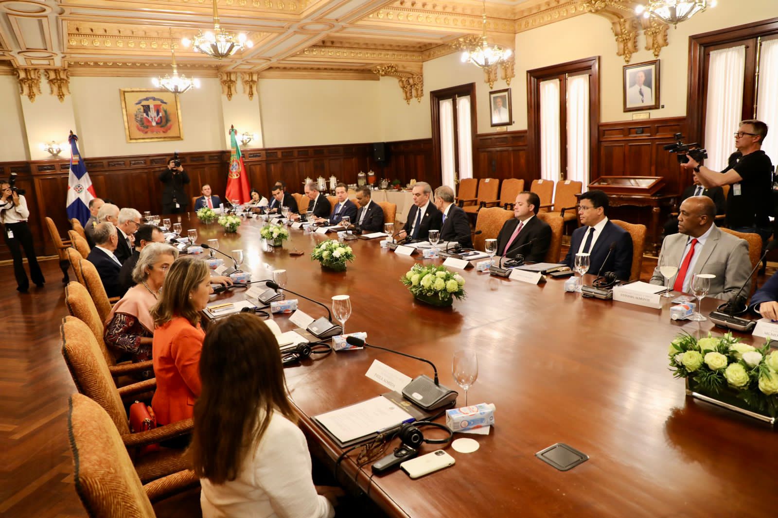 En estos momentos los presidentes de la República Dominicana, Luis Abinader y de la República Portuguesa, Marcelo Rebelo De Sousa, encabezan una reunión con las delegaciones de ambos países, en el Salón Consejo de Gobierno del Palacio Nacional.