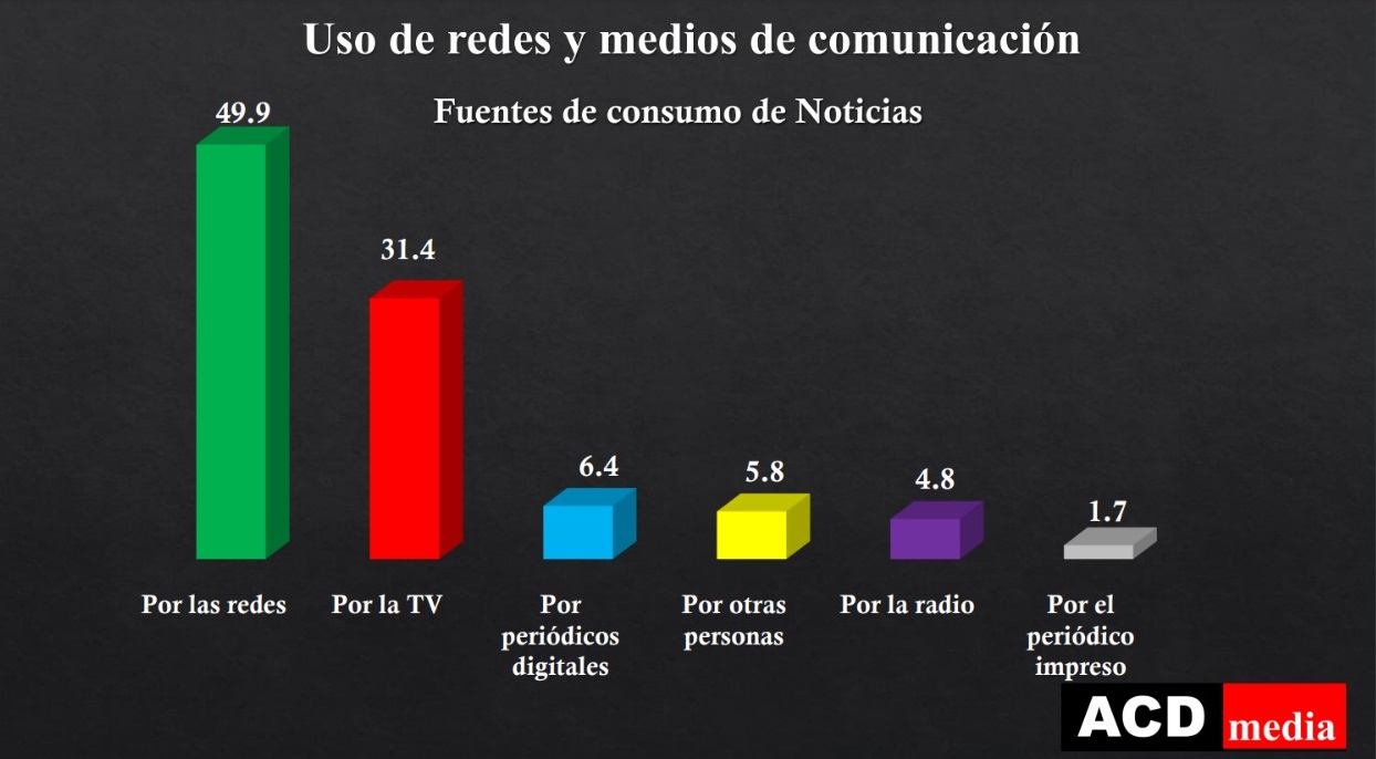 El mas reciente estudio sobre este proceso lo refleja la última encuesta del grupo de comunicaciones ACD Media que determino que solo un 1.7 por ciento de la población consultada lee los periódicos impresos.