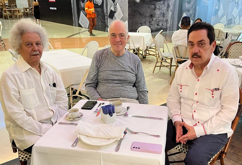 El reconocido economista, intelectual e historiador, Bernardo Vega, sostuvo una conversacion sobre el Cemí de Algodón, valiosa pieza arqueológica taína con el Embajador Tony Raful y Onorio Montás. El encuentro giró sobre la exhibición próximamente en nuestro país de la pieza