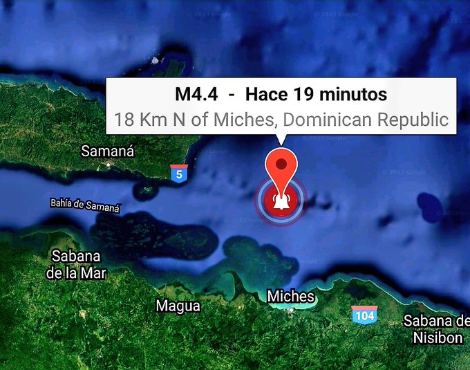 Según los datos preliminares del Centro Nacional de Sismología de la Universidad Autónoma de Santo Domingo (UASD), la magnitud del sismo fue de 4.4, al norte de Miches.