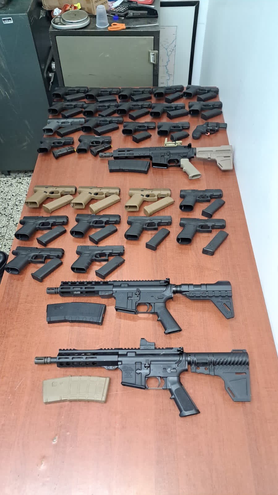 Agentes policiales, adscritos a la División Especial de Investigación de Delitos Trasnacionales (DEIDET), mediante un arduo trabajo de inteligencia, arrestaron a un hombre identificado como el destinatario de 26 pistolas, 3 fusiles y 1 revólver, los cuales estaban dentro de dos tanques con insumos de primera necesidad, enviados desde Brooklyn, en Nueva York, Estados Unidos, para que éste los recibiera en el municipio de Tamboril, provincia Santiago de los Caballeros.