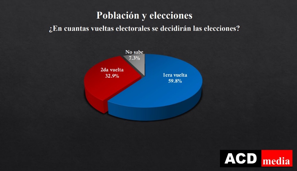 Ante la pregunta ¿En cuántas vueltas electorales se decidirán las elecciones?, el 32.9% respondió que el proceso se decidirá en 2da. vuelta.
