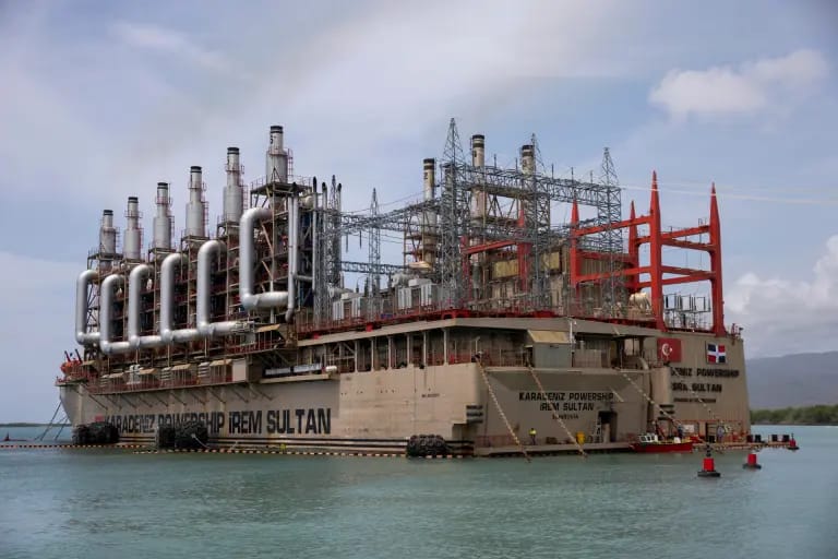 “Desde hace unos días las chimeneas de una barcaza de generación de energía eléctrica ubicada en aguas del Puerto Viejo de Azua, a unos metros de la costa sur de República Dominicana, han comenzado a funcionar y a expulsar humo, observado con preocupación por los habitantes de la zona”, señaló un dirigente comunitario que pidió la intervención del presidente de la República.
