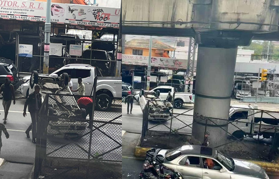 Santo Domingo RD . -Al difundirselas primeras imágenes, trascendió que el vehículo con las gomas arriba había caído desde el elevado de la avenida 27 de Febrero. No obstante, la Dirección General de Seguridad de Tránsito y Transporte Terrestre (Digesett), a través de su dirección de prensa, que aclaró que se trató de una colisión entre dos vehículos, donde «no hubo heridos».