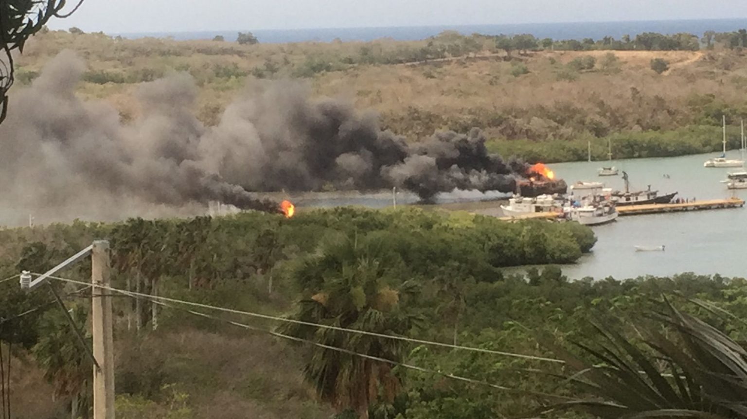 El incendio de los tres barcos pesqueros en la bahía de Luperón no causo humanas, aunque si las económicas fueron millonarias.