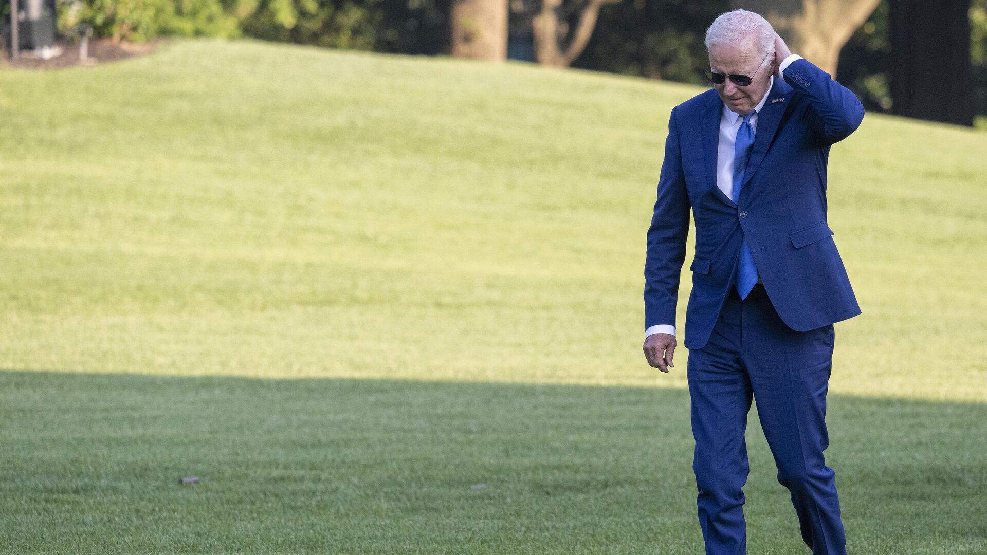 No obstante, el golpe no le causó lesiones inmediatas a Biden, aunque sí se frotó la cabeza mientras caminaba por el césped.