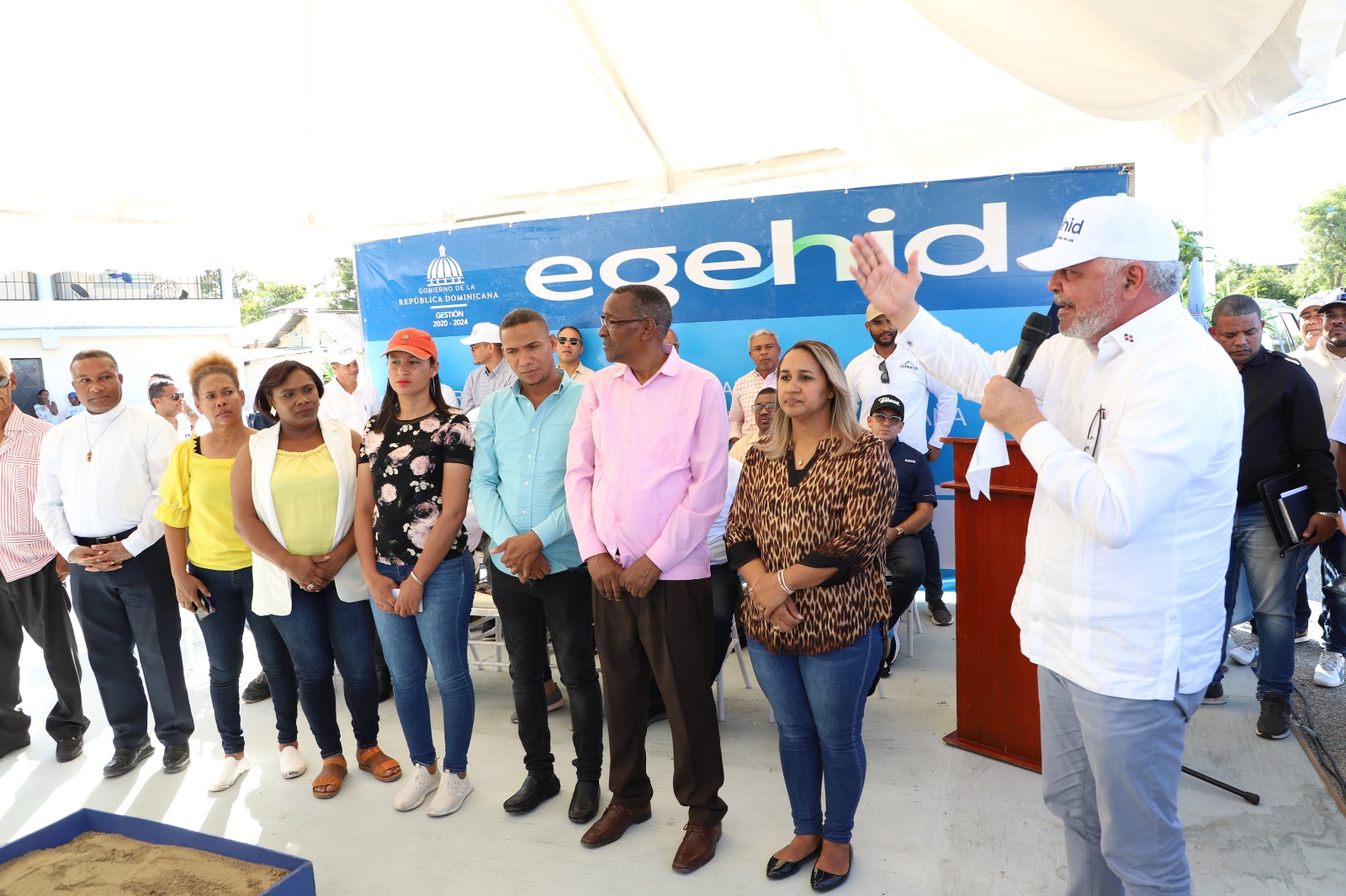 Este primer palazo para el inicio de la construcción de la verja perimetral Bulevar Tenguerengue contó con la presencia de la gobernadora de San Juan, Elvira Corporán, alcaldesa Hanoi Sánchez , el diputado Nidio Encarnación, el ingeniero Expedito Pepin, Henry Sarraf, miembro del Consejo de Administración de Egehid, entre otras personalidades.