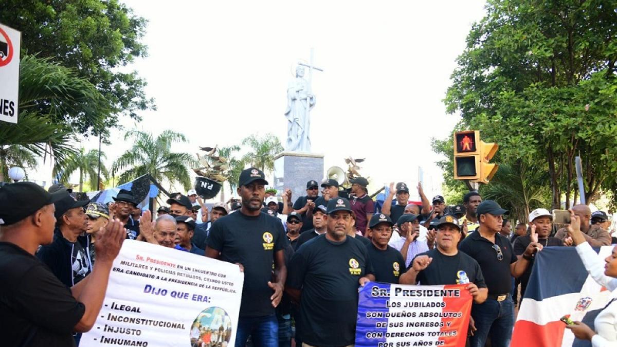 Los manifestantes portando pancartas y vociferando consignas alusivas a su demanda, pidiendo al presidente Luis Abinader atender sus demandas y disponer la mejoría de los ingresos de los miles de pensionados y jubilados.