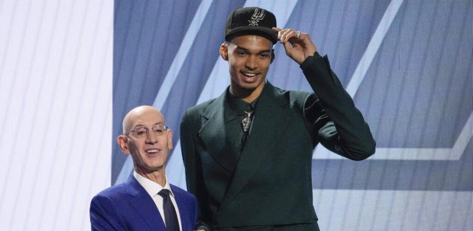 La contratación del francés de 19 años era considerada más que un hecho desde hace meses y finalmente la anunció el jueves en la noche el comisionado de la NBA, Adam Silver, en el Centro Barclays, en Brooklyn, en medio de los gritos de “¡Wemby! ¡Wemby! de un grupo de fanáticos del club que agitaban pancartas en la primera fila de asientos.