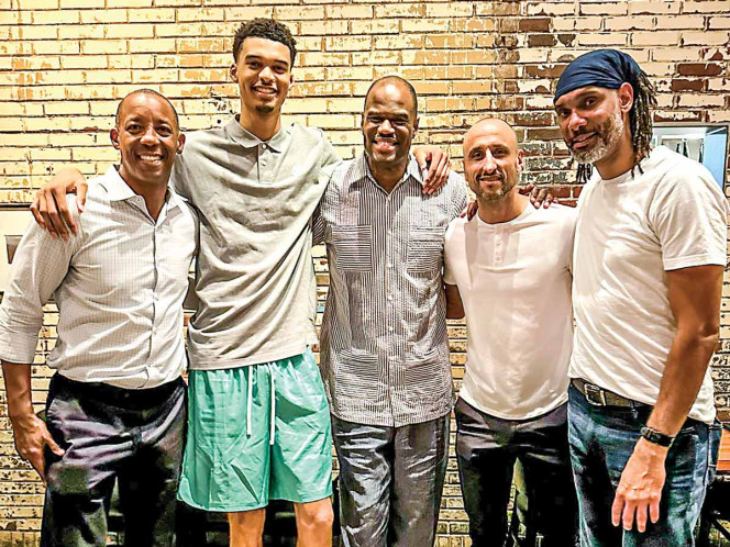 San Antonio.– El nuevo joven sensación de la NBA, Victor Wembanyam, vivió una noche de ensueño en la que pudo cenar y conocer de la NBA con Manu Ginóbili, Tim Duncan y David Robinson, las leyendas de los San Antonio Spurs, organización que lo adquirió como selección número uno del Draft 2023.