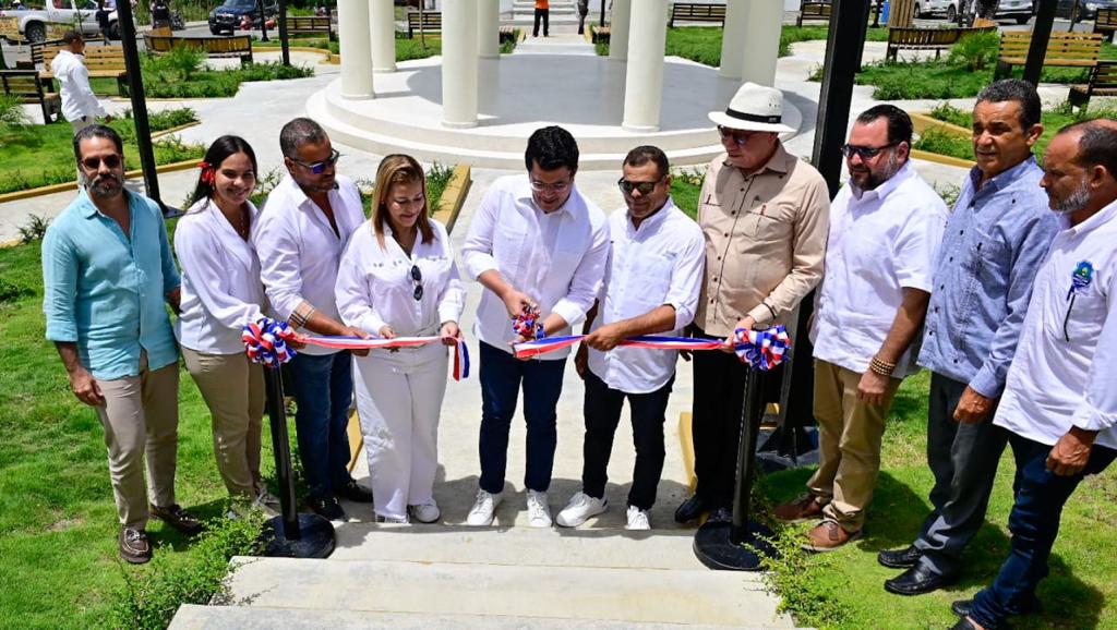 El proyecto de embellecimiento del Parque Central de este distrito municipal es una obra de 1,300 metros cuadrados de intervención, de los cuales se realizaron los trabajos de 200 metros cuadrados de acera y 139 metros lineales.