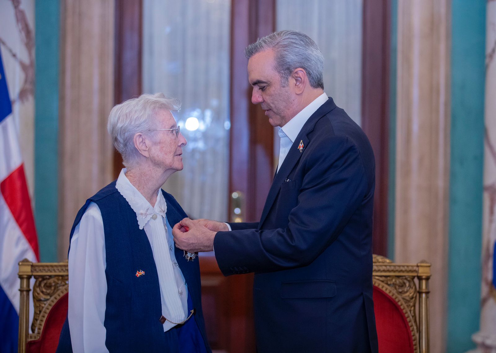 Santo Domingo. – El presidente Luis Abinader, junto a la vicepresidenta Raquel Peña, encabezó la condecoración a tres distinguidas misioneras canadienses, reconocidas como educadoras y líderes comunitarias en el país, que dedicaron su vida a trabajar especialmente en favor de los jóvenes y mujeres de comunidades económicamente deprimidas en el país.