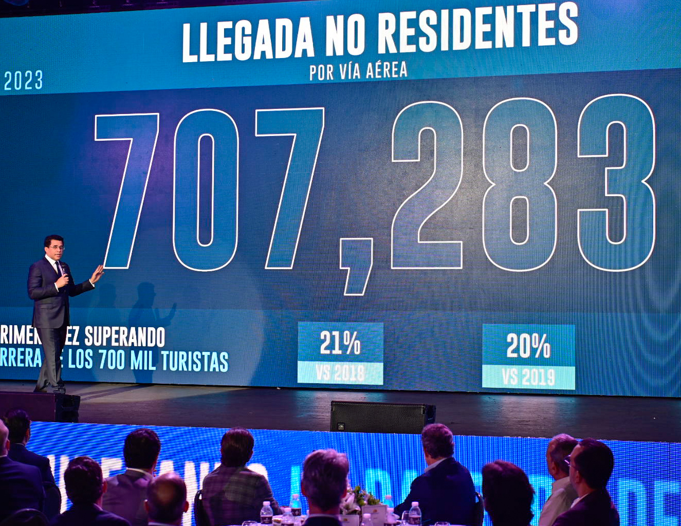 Al presentar los resultados del comportamiento del turismo en primer semestre de este año, en un almuerzo que tuvo la presencia de honor del gobernador del Banco Central, Héctor Valdez Albizu, el ministro Collado informó que sólo en junio el país recibió 707,283 turistas, lo que representa un crecimiento de 21%más que en el 2018, 20% más que el 2019 y 10% más que en el 2022.