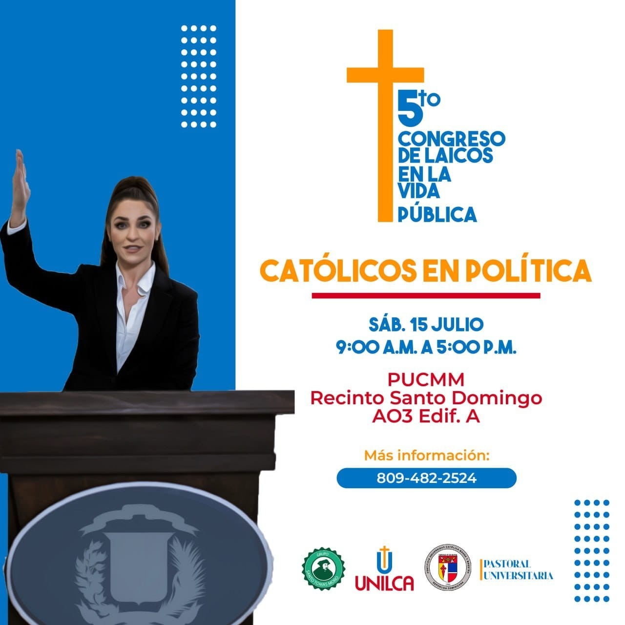 Es por ello, que desde hace varios años se promueve la inserción del cristiano en todos los estamentos de la vida pública.  Por eso surge el 5to. Congreso de Laicos en la vida pública, con el tema: Católicos en Política, este sábado 15 de Julio de 9:00 a. m – 5:00 p. m. en la Pontificia Universidad Católica Madre y Maestra (PUCMM), salón AO3, edificio A, Recinto Santo Domingo.