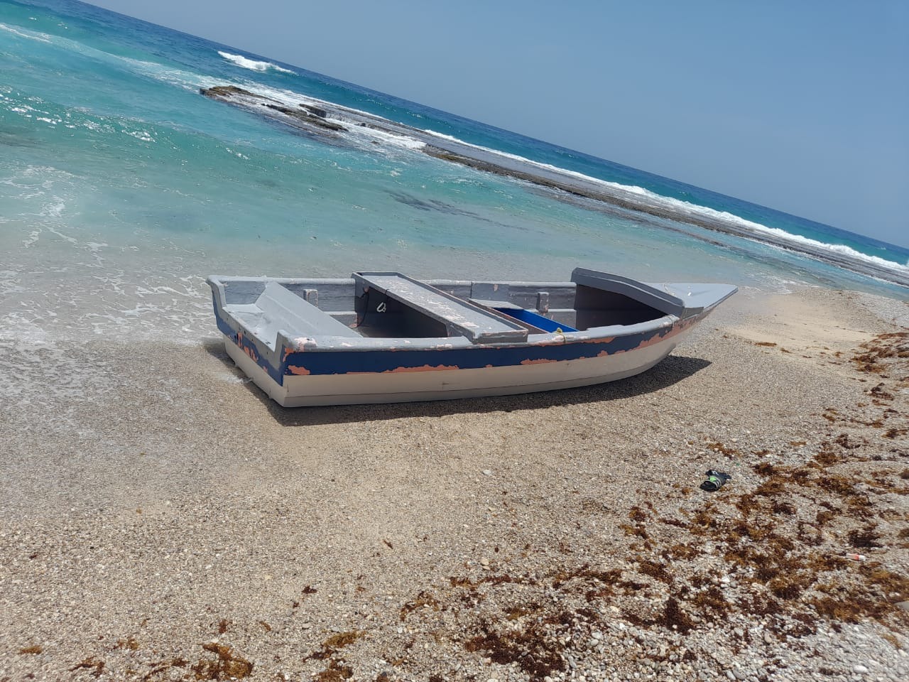 Según los informes obtenidos, en esta última embarcación fue dejada abandona y personas que se dedican a merodear la playa, cargaron con el motor de esta y garrafones de combustibles.