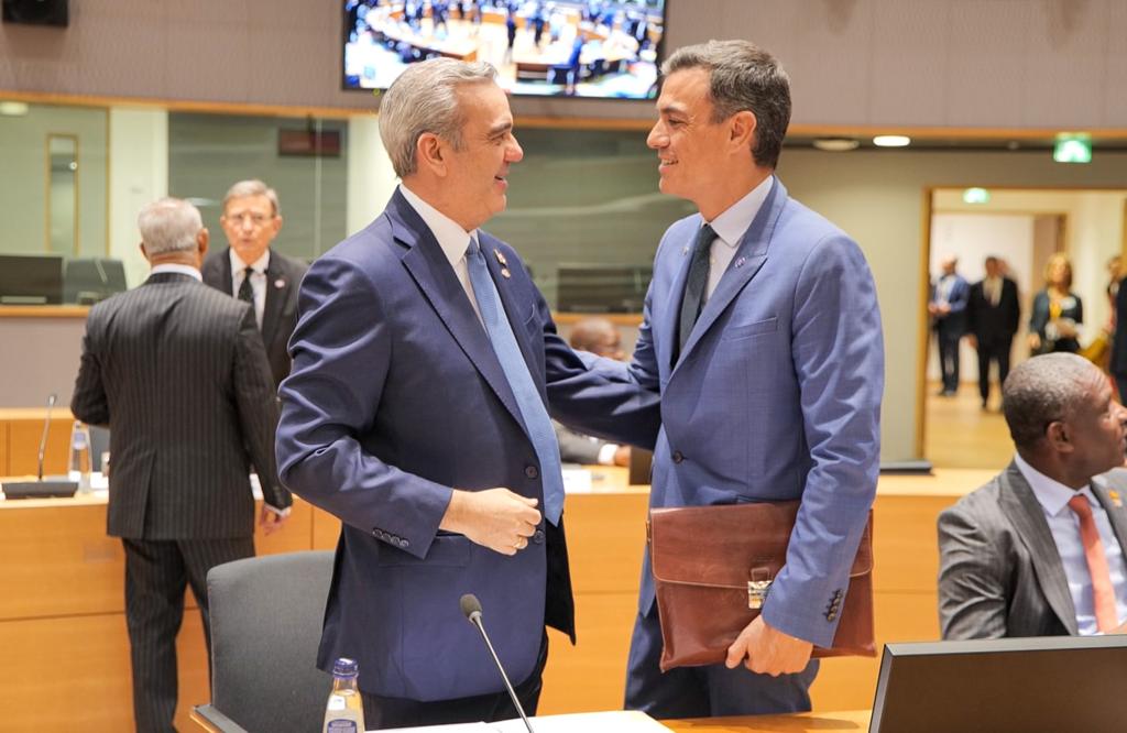 Previo a la reunión entre líderes europeos y del Caribe, Abinader intercambió saludos y conversó por breves minutos con el presidente del Consejo de la Unión Europea, Charles Michel y el presidente del gobierno de España, Pedro Sánchez, entre otros líderes presentes en la Cumbre.