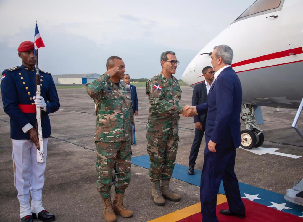 El mandatario llegó a las 7:00 de la noche por la terminal aérea de San Isidro, siendo recibido por el ministro de Defensa, el teniente general Carlos Luciano Díaz Morfa; el jefebde la Fuerza Aérea, el mayor general Carlos R. Febrillet Rodríguez y el comandante del Primer Regimiento Dominicano Guardia Presidencial, general de brigada Guillermo Caro Cruz.