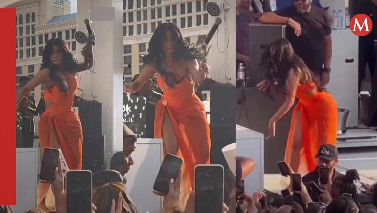 En el clip que circula en las redes sociales, se ve a la cantante de “WAP” lanzar su micrófono luego de que alguien de la audiencia le tirara una bebida durante un concierto en Las Vegas.