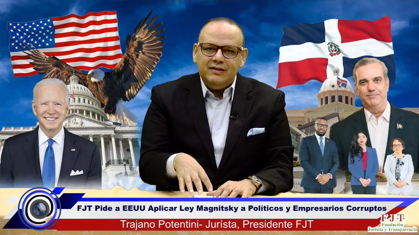 Santo Domingo, RD.- La Fundación Justicia y Transparencia (FJT), urgió al gobierno norteamericano a poner en practica la aplicación de la Ley Global Magnitsky, para castigar y objetar a los políticos y empresarios dominicanos, involucrados en casos de alta corrupción, lavado de activos, crimines graves y violación a los derechos humanos, garantizando la NO impunidad, ante las debilidades institucionales y la complicidad del poder político, con la delincuencia trasnacional.