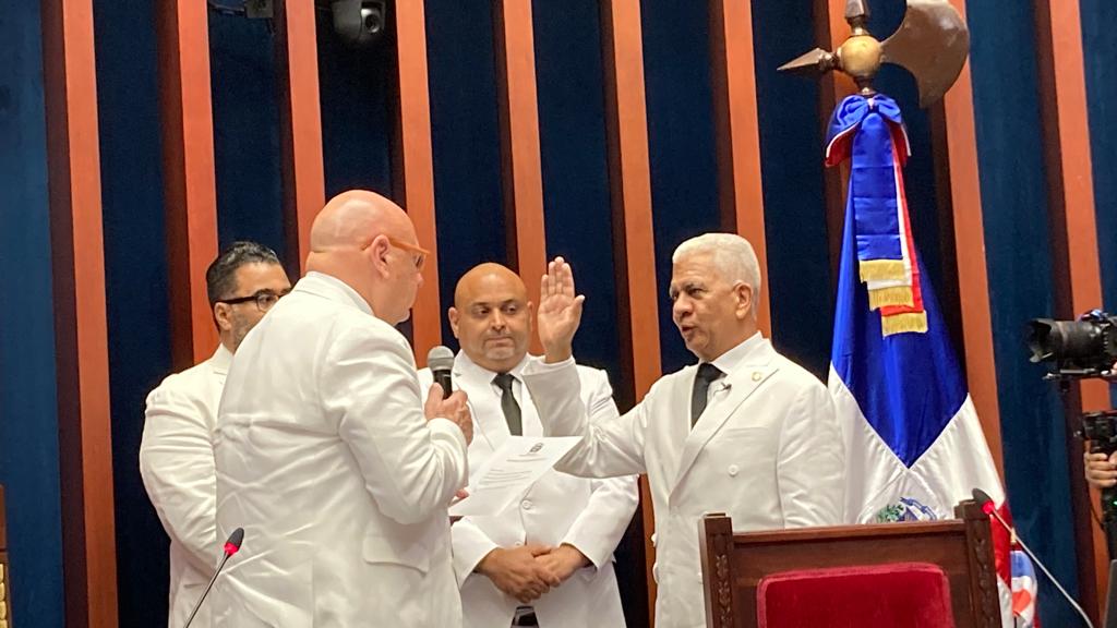 El Senador por la provincia Sánchez Ramírez fue juramentado por el Bufete de mayoría de edad, compuesto por el Senador Pedro Catrain, presidente; Franklin Rodríguez, secretario; y Lenin Valdez, secretario.