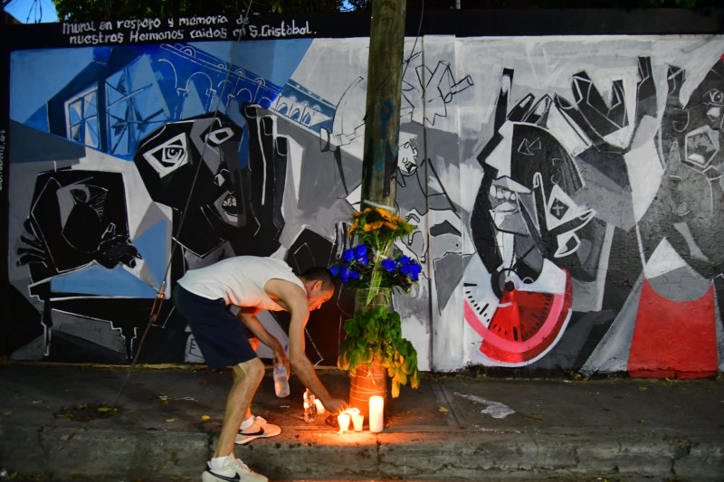 También en la calle Jesús de Galindez, esquina Constitución, a las afueras de la escuela Manuel María Valencia, fueron colocadas flores azules y amarillas, con algunos velones y velas en apoyo.