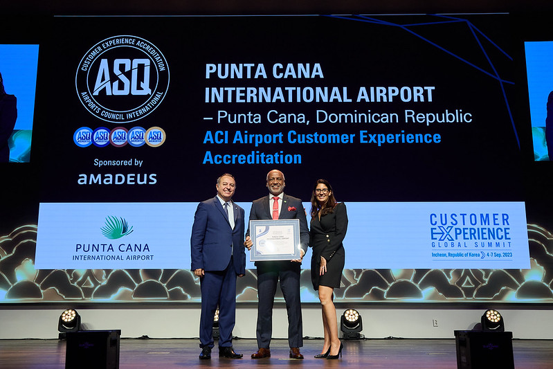 Incheon, República de Corea. – El Aeropuerto Internacional de Punta Cana (PUJ) recibió por séptimo año consecutivo en la ceremonia de los premios de Calidad del Servicio Aeroportuario (ASQ) del Consejo Internacional de Aeropuertos (ACI), el galardón a “Mejor Aeropuerto por Tamaño y Región” en la categoría de 5 a 15 millones de pasajeros por año en el Caribe y Latinoamérica.
