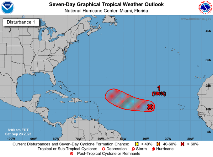 El NHC estimó, en su perspectiva de condiciones tropicales de las 8:00 a.m., las probabilidades de desarrollo de este sistema en 90% dentro de las próximas 48 horas (dos días) y en 100% en los próximos siete días.