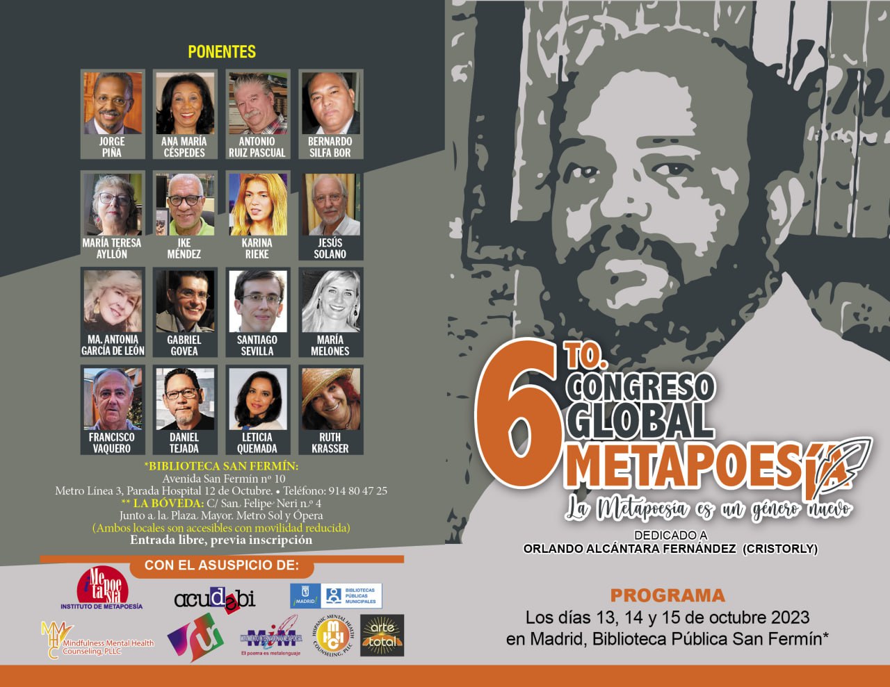 MADRID, España.- Todo listo para la realización del 6To. Congreso Global Meta poesía dedicado a Orlando Alcántara Fernández en Madrid, España del 13 al 22 de octubre.