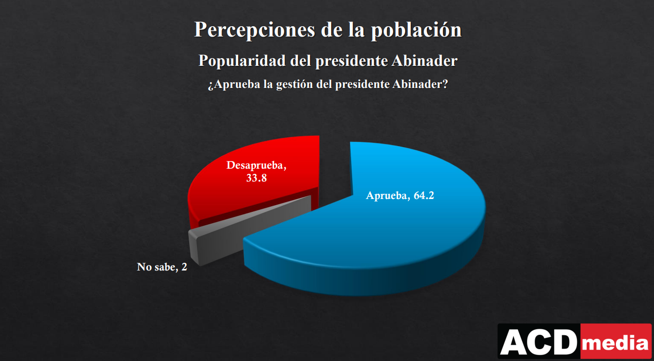 Sin embargo, el 64.2% aprueba la gestión del presidente Luis Abinader y el 33.8% la rechaza.