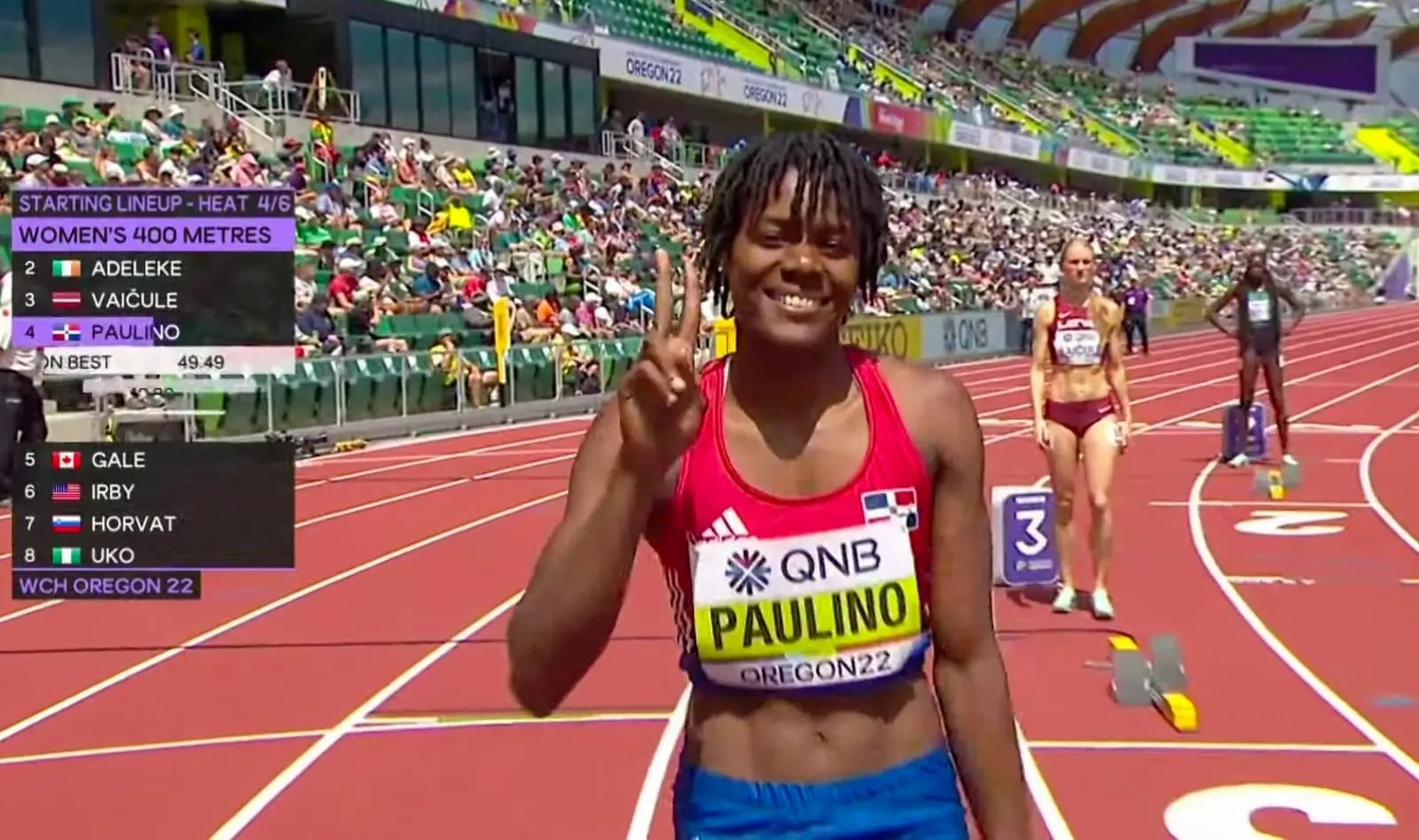CHILE.– Tras conquistar la medalla de oro, en los 200 metros y la del relevo mixto 4 × 400, además del bronce en el relevo 4 × 100, Marileidy Paulino ahora va por más y correrá el sábado a las 7:38 p.m. hora dominicana en el relevo femenino 4 x 400.