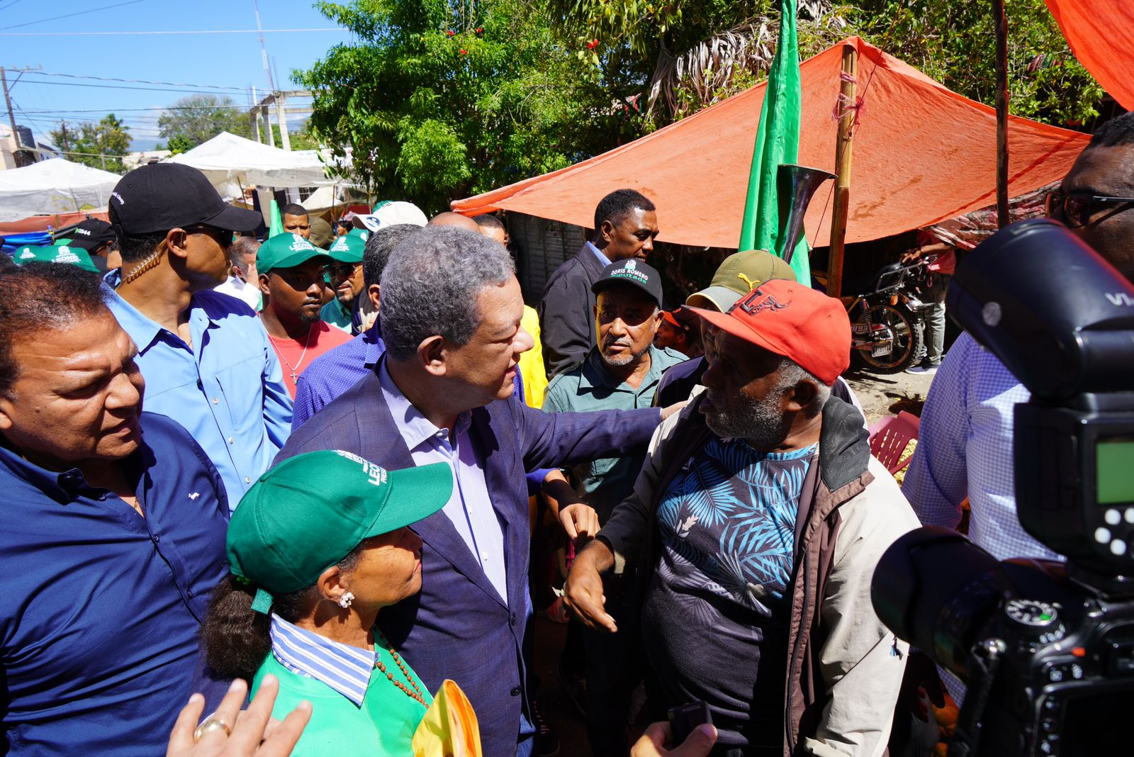 San Juan, RD.- El presidente del partido Fuerza del Pueblo, Leonel Fernández, visitó el mercado del municipio de San Juan de la Maguana para conocer realidad de las personas que tienen como fuente de sustento la compra y venta de productos en este espacio comercial, que a su vez enmarca gran parte de la vida popular del pueblo.