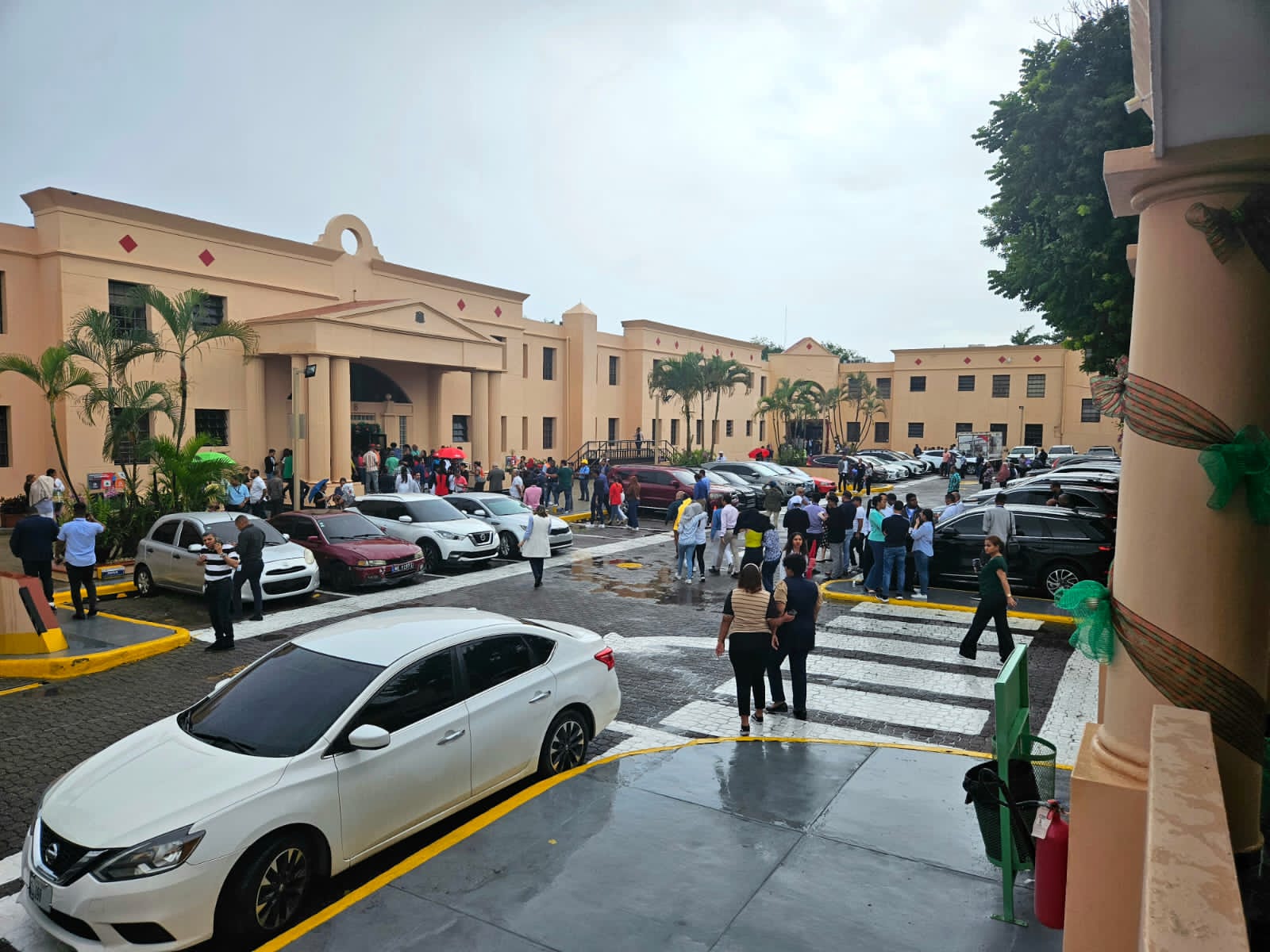 En una imagen que salió a relucir se puede observar gran parte de los funcionarios y empleados fuera de sus puesto de trabajo debido al temblor de tierra.