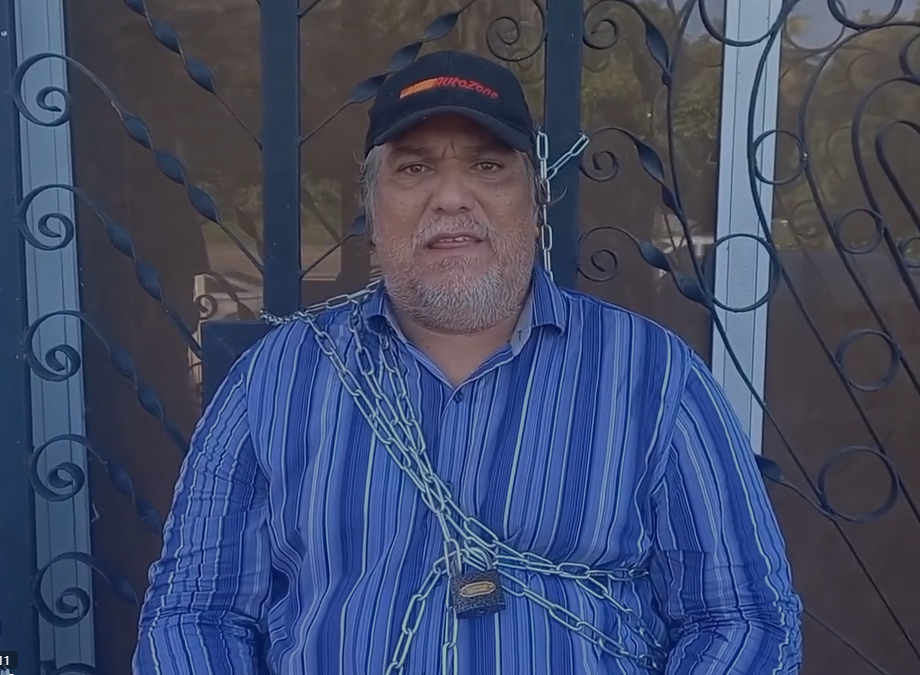 Santo Domingo. – El dirigente del PRM y coordinador administrativo de la dirección general de Aduanas, Miguel A Campos Guerrero, que no es oriundo del Municipio de Pedro Brand, se encadenó frente al Ayuntamiento de esa demarcación como forma de presionar a la Comisión Nacional de Elecciones Interna (CNI) del partido oficialista.