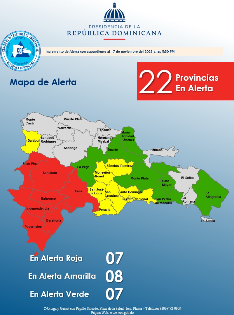 Las provincias en alerta roja 🔴 son: Pedernales,