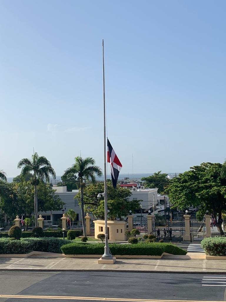 Santo Domingo, RD.- La bandera en el Palacio Nacional este lunes ondea a media asta tras el presidente Luis Abinader disponer mediante el decreto 586-23, tres (3) días de duelo oficial por las víctimas mortales a causa del fenómeno atmosférico que se registró durante el fin de semana en el país.