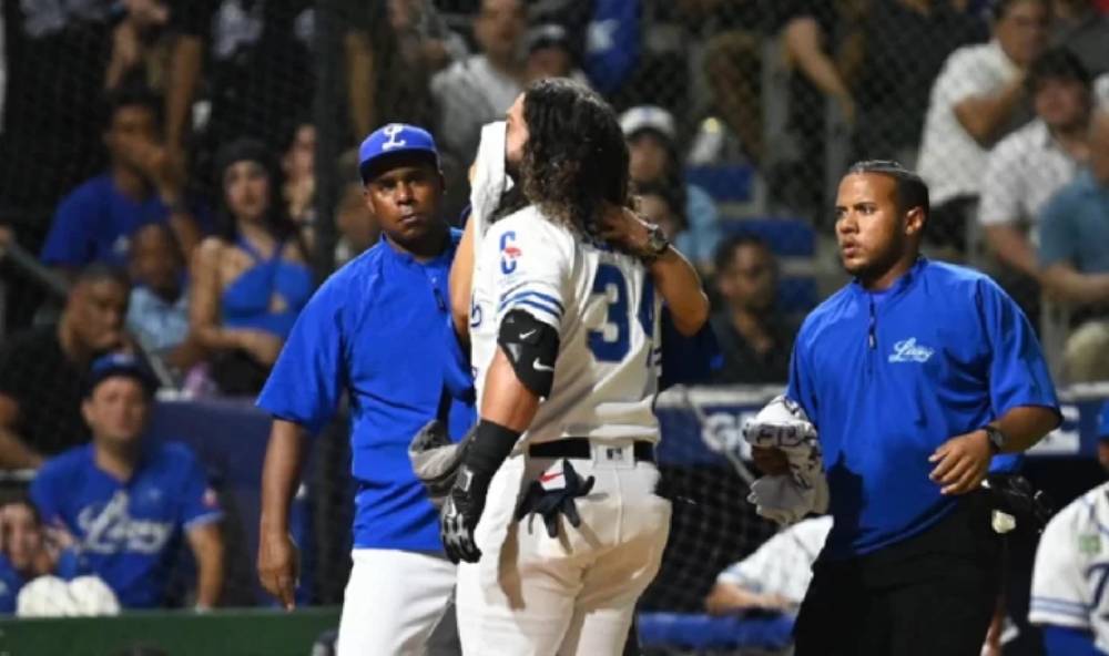 Santo Domingo RD .- El colombiano Jorge Alfaro, quien recibió un pelotazo en el rostro durante el partido de este domingo frente a las Águilas Cibaeñas en el Estadio Quisqueya Juan Marichal, se mantendrá fuera de acción para cumplir un protocolo de recuperación, establecido por el cuerpo médico del conjunto azul.