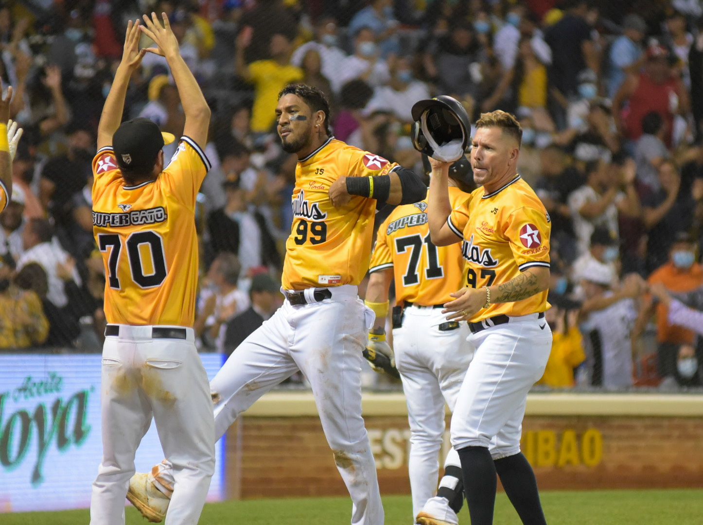 En el octavo anfitrión, Arístides Aquino encontró en las bases a Luis Barreras, que pegó hit al central, y Rojas Jr., que fue transferido por Shea Spitzbarth, y despachó un cuadrangular de tres vueltas que puso el juego 7-4.